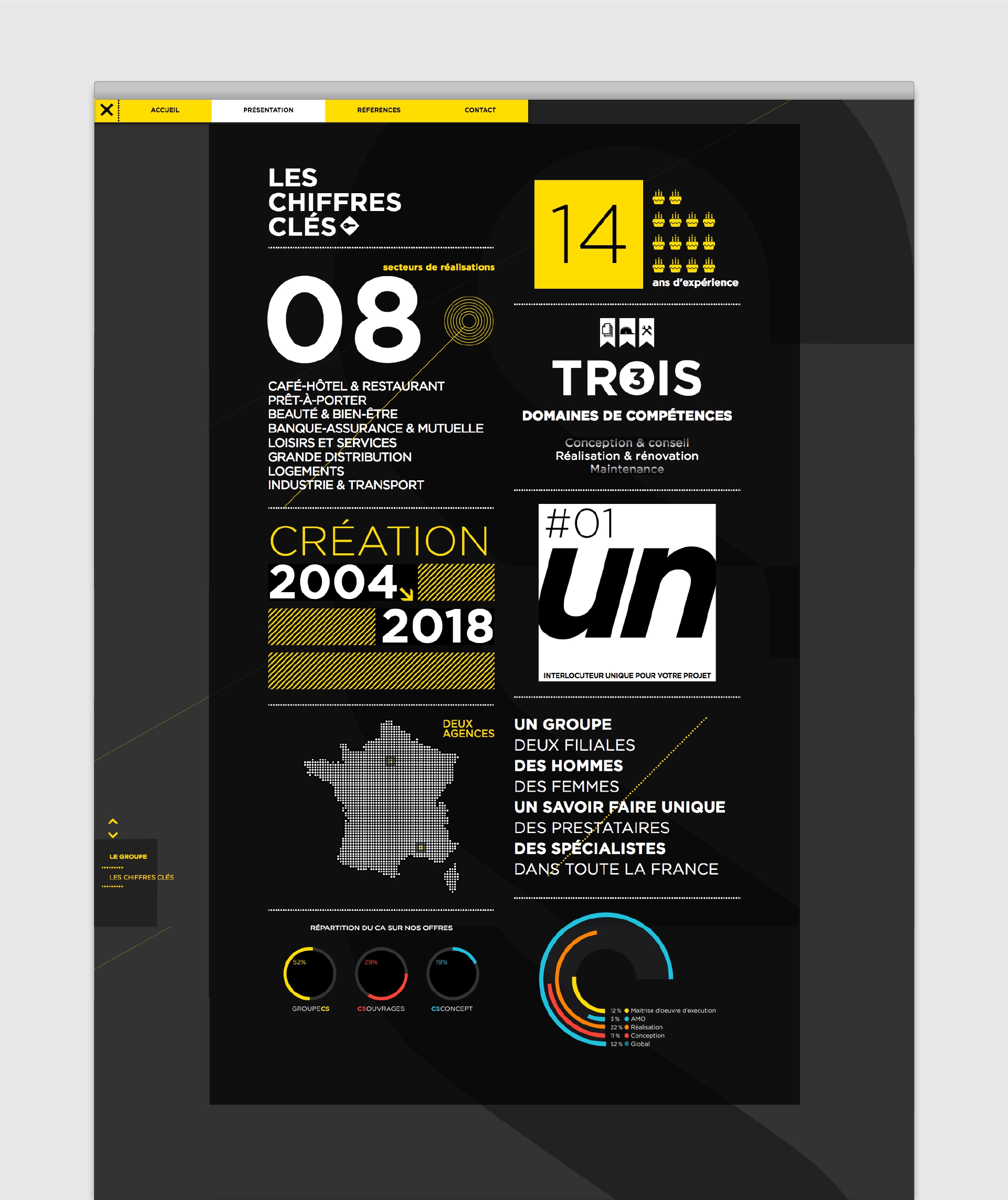 « Groupe CS » propose une solution de construction « clé en main » pour des acteurs comme Mc Donald’s, RATP, Centre Optique Mutualiste etc…, grâce à la réunion des savoir-faire de ses deux filiales « CS concept » & « CS ouvrages ».